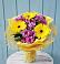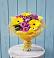 Эта композиция, как первая звезда, загорающаяся на небосклоне, такая далекая, туманная и такая притягательная. Флористы воплотили в жизнь не совсем привычное цветосочетание, и оно оказалось весьма удачным. Тут желто герберы дружат с нежно-лиловыми хризантемами, а завершают ансамбль зелень и гипсофила.