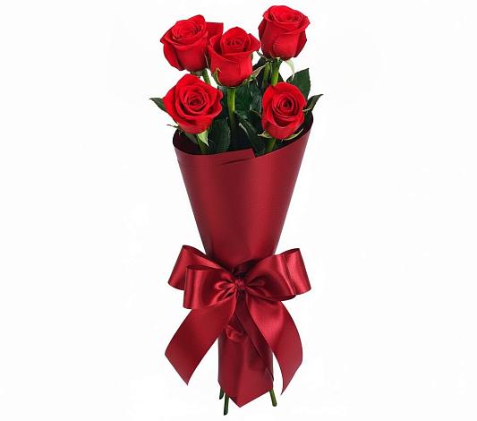 Этот букет собран из пяти свежайших красных роз, которые заслуженно признаны самыми популярными цветами, ведь сложно представить что-то еще более красивое, завораживающее и пленительное. Такой вариант букета будет уместен и во время свидания, и как дополнение к поздравлению с днем рождения.